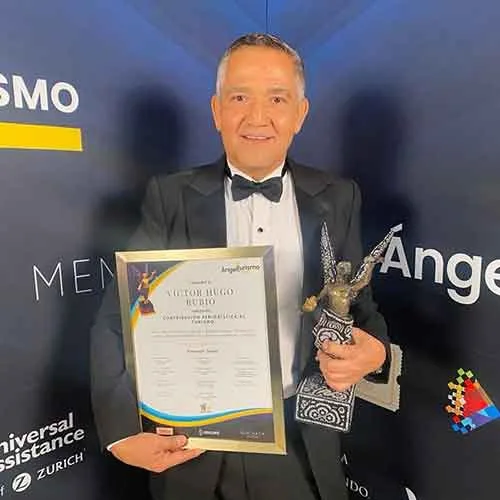 De los galardonados, mencionaremos a todos en otro momento, hoy este espacio está dedicado a: Víctor Hugo Rubio Duarte, quien fue premiado en la categoría: “Contribución periodística al Turismo”, lo que reconoce su trayectoria y labor en el periodismo turístico.