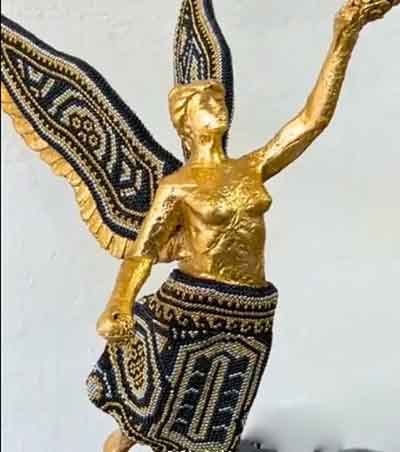Diseñada por el artista e investigador mexicano César Menchaca quien se inspira en el icónico Ángel de la Independencia –obra que engalana el paseo de la Reforma, en Ciudad de México y por todos conocida como la Victoria alada, una mujer–.