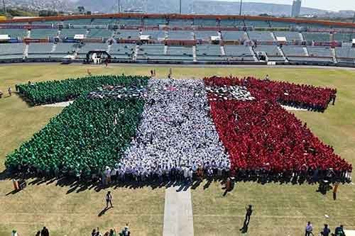 Asimismo, se integró la representación de las 32 entidades federativas, identificadas mediante banderines, como símbolo de unidad nacional.