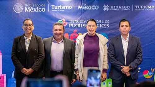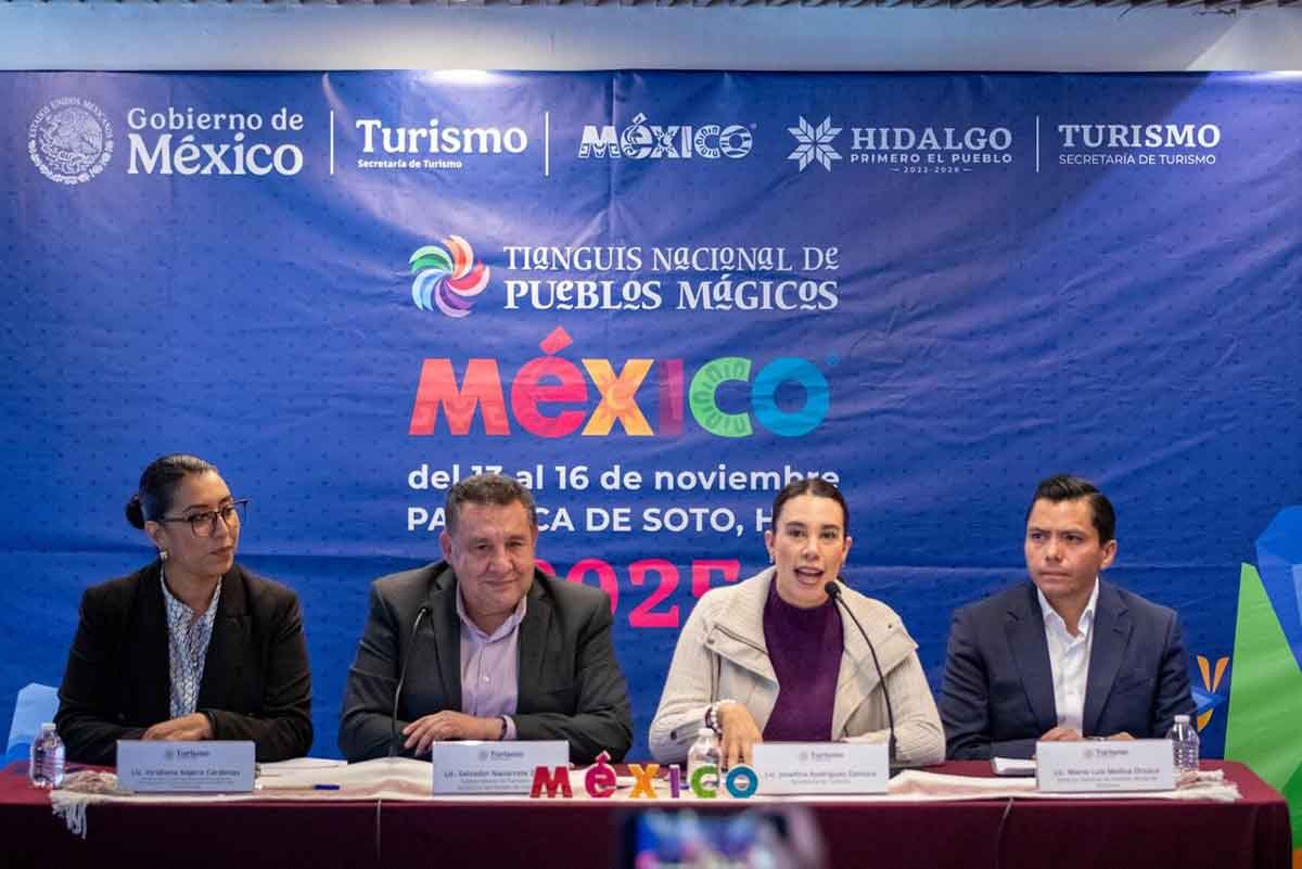 Josefina Rodríguez Zamora, secretaria de Turismo del Gobierno de México y Salvador Navarrete Zorrilla, subsecretario de Turismo de la Secretaría de Turismo del estado de Hidalgo, en representación de la secretaria, Elizabeth Quintanar Gómez, anunciaron los pormenores del Tianguis Nacional de Pueblos Mágicos (TNPM) 2025, que se celebrará, del 13 al 16 de noviembre en Hidalgo, con sedes en Real del Monte y en el Recinto Ferial de Pachuca.