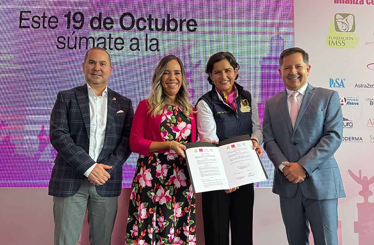 Sara Peredo, directora de Reputación y Comunicación Corporativa de Natura & Avon; las doctoras Gabriela Luna Sandoval y Elisa Sarai Aguilar Ruiz, directora y Mastóloga de la Clínica de Mama de Tláhuac, respectivamente; Silvia Ojeda, directora de Fundación Instituto Natura; Ana Lía de Fátima García García, directora general de Fundación IMSS y, Francisco Demesa, director general de Natura & Avon en México invitaron a inscribirse y participar en la carrera-caminata “Mi Lucha es Rosa en: Asdeporte o avonmx.com/carreraconcausa. Las inscripciones están disponibles hasta el 17 de octubre de 2025 o hasta agotar cupo.
