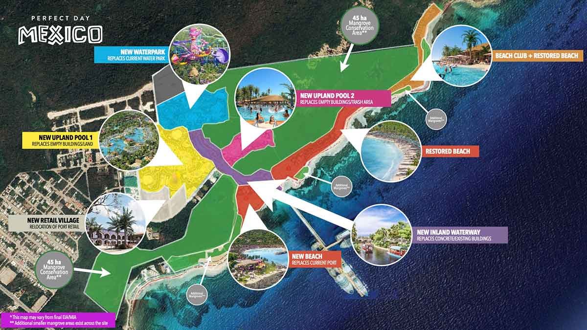 La naviera afirma que la construcción, a erigirse en las instalaciones abandonadas de un parque acuático previo, cumple con los requerimientos medioambientales de las autoridades mexicanas, por lo que prevé ingresar su Manifestación de Impacto Ambiental (MIA) en, aproximadamente, dos semanas.