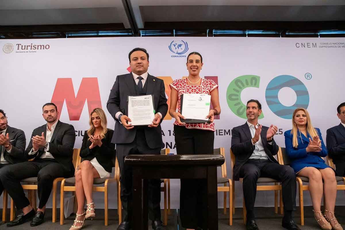 Josefina Rodríguez Zamora, secretaria de Turismo federal, anunció la firma del convenio de uso de la marca México con el Consejo de Jóvenes Pro México A.C. (Conajo MX).